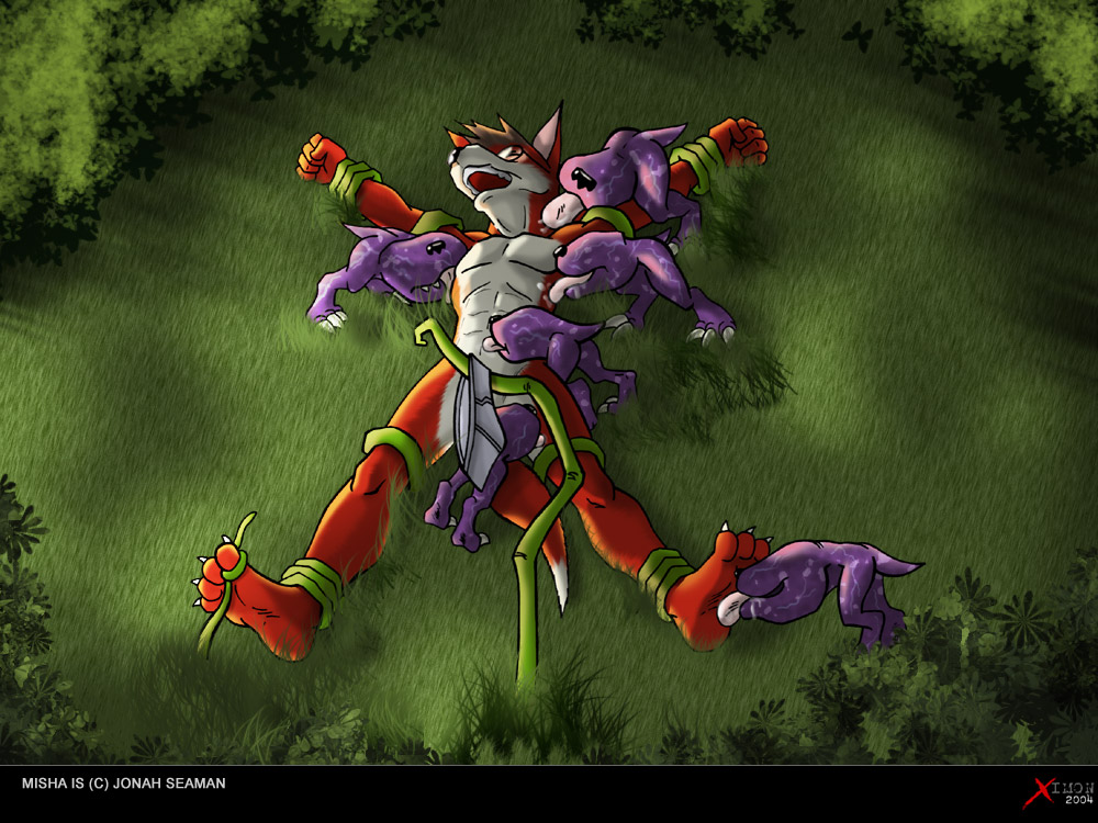 For such a small animal, it sure had a big tongue. It was fairly rough but coated in moist saliva, which both tickled and disgusted Misha. If there was anything worse than being tickled, it was being tickled and slobbered on. Joining in the fray, two more positioned themselves at either both of his sensitive armpits and proceeded to give them both a good tongue bath.